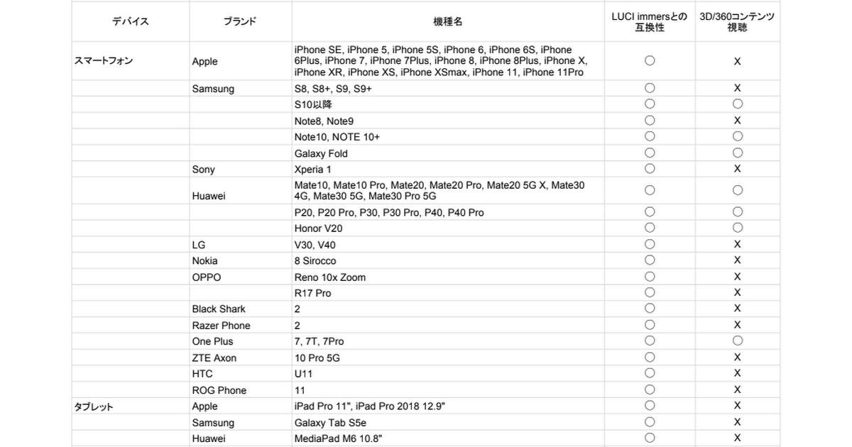 なお詳細な対応機種は以下の互換性リストに掲載されていますのでLUCI immersを使用する際はチェックしましょう。