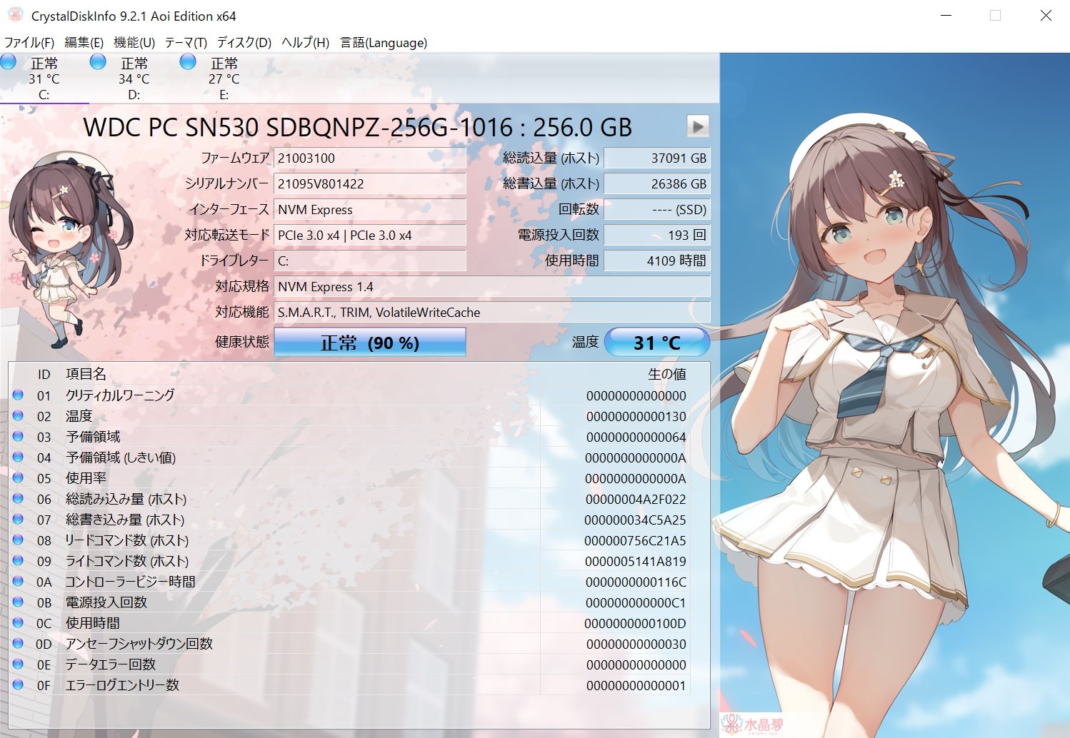 「CrystalDiskInfo(クリスタルディスクインフォ)」はパソコンに接続されているHDD、SSDの状態を管理する事できるソフトです。